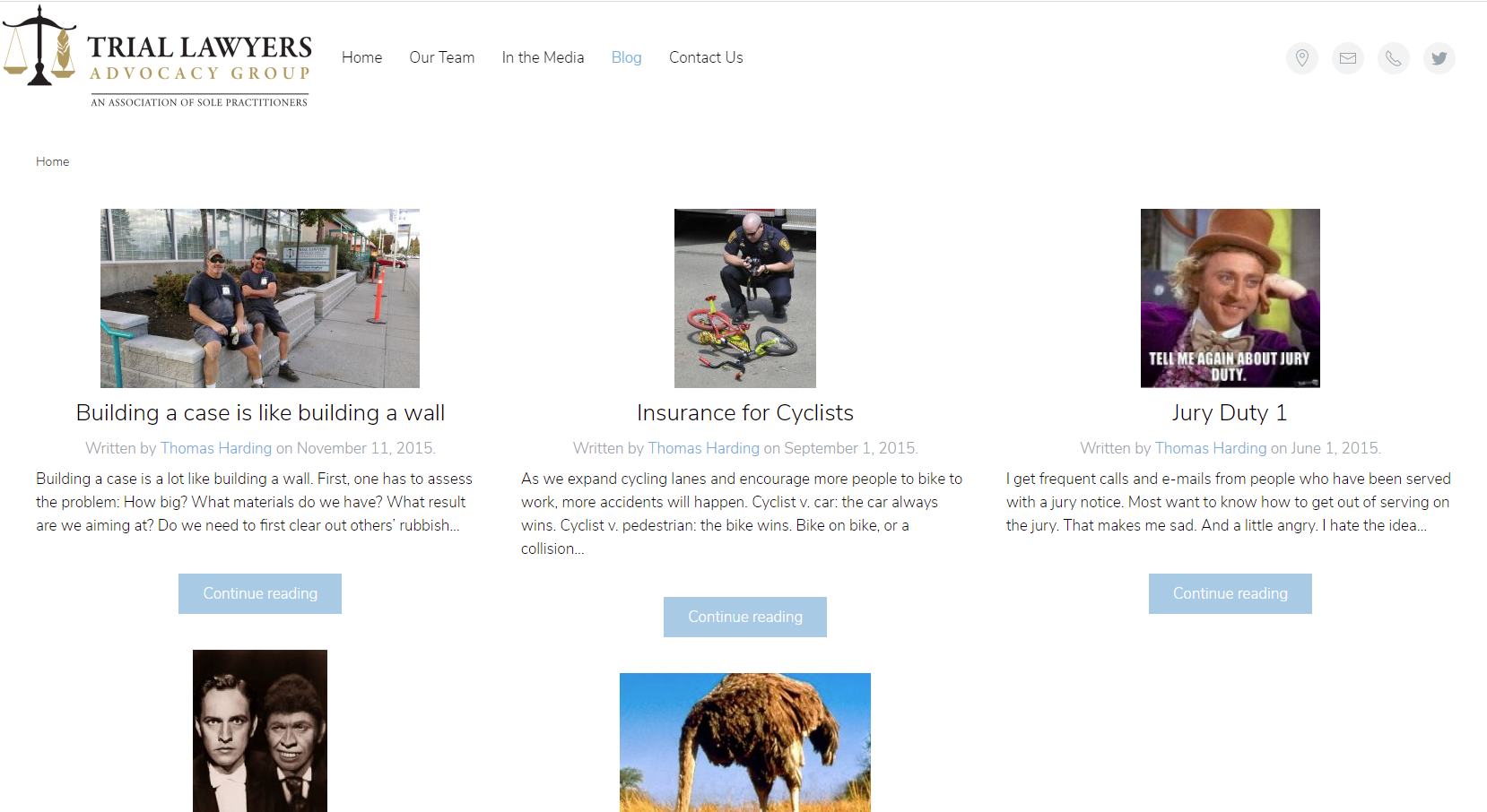 Thomas Harding, the founder of Trial Lawyers Advocacy Group, had regularly written great blog posts ranging from case analyses to opinion pieces since approximately 2013. During the transition to Clear Legal, we transferred his original blog posts to clearlaw.ca and worked with the other firm partners to create a posting schedule.
